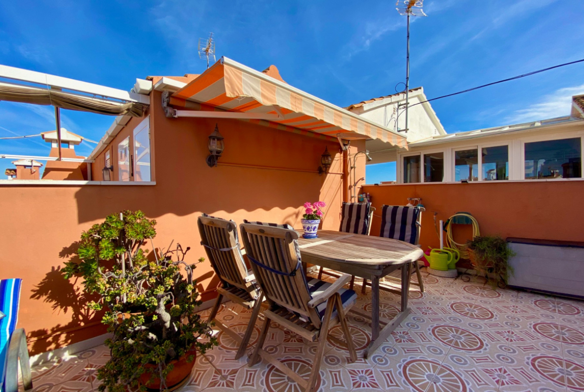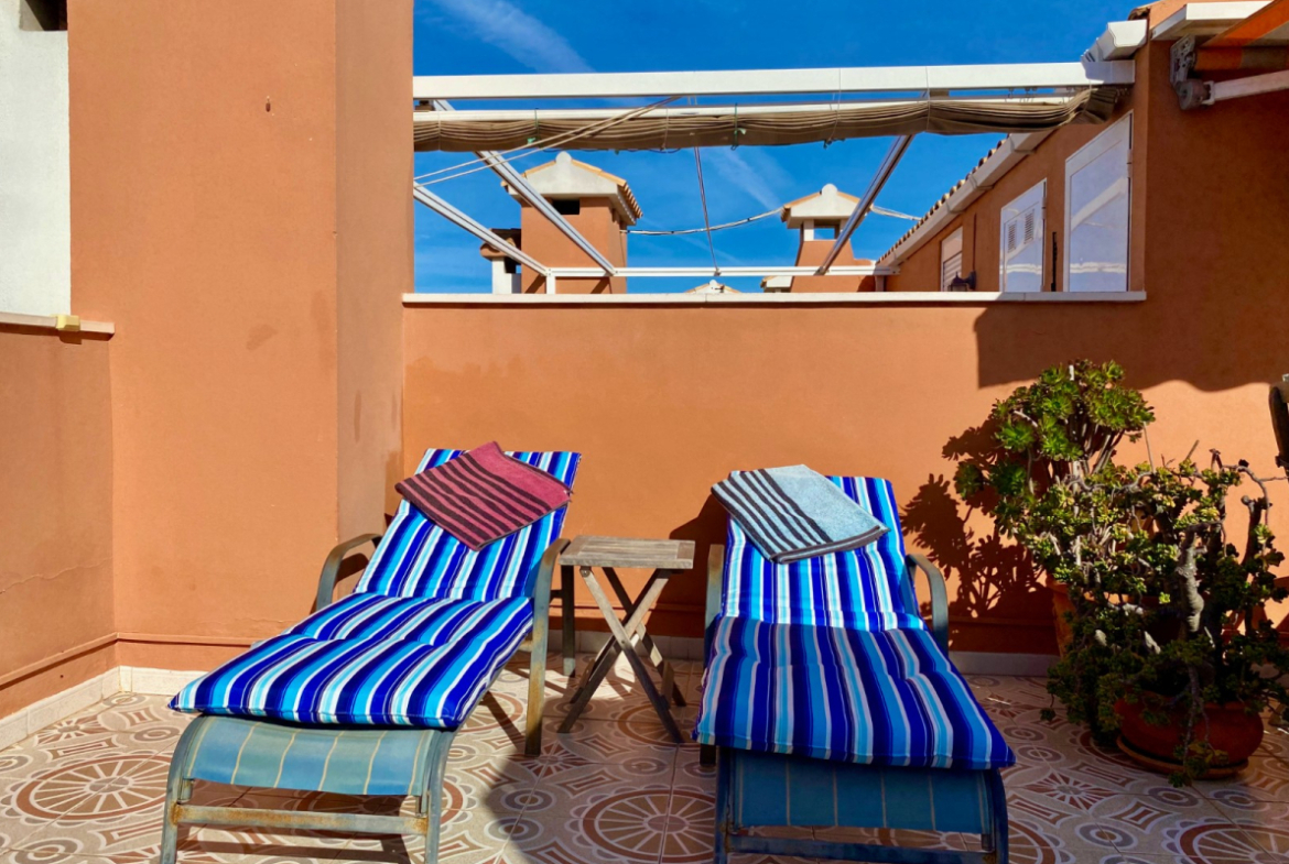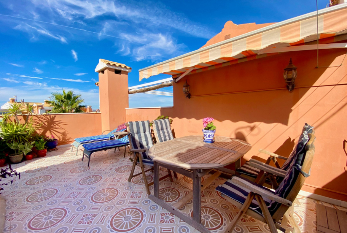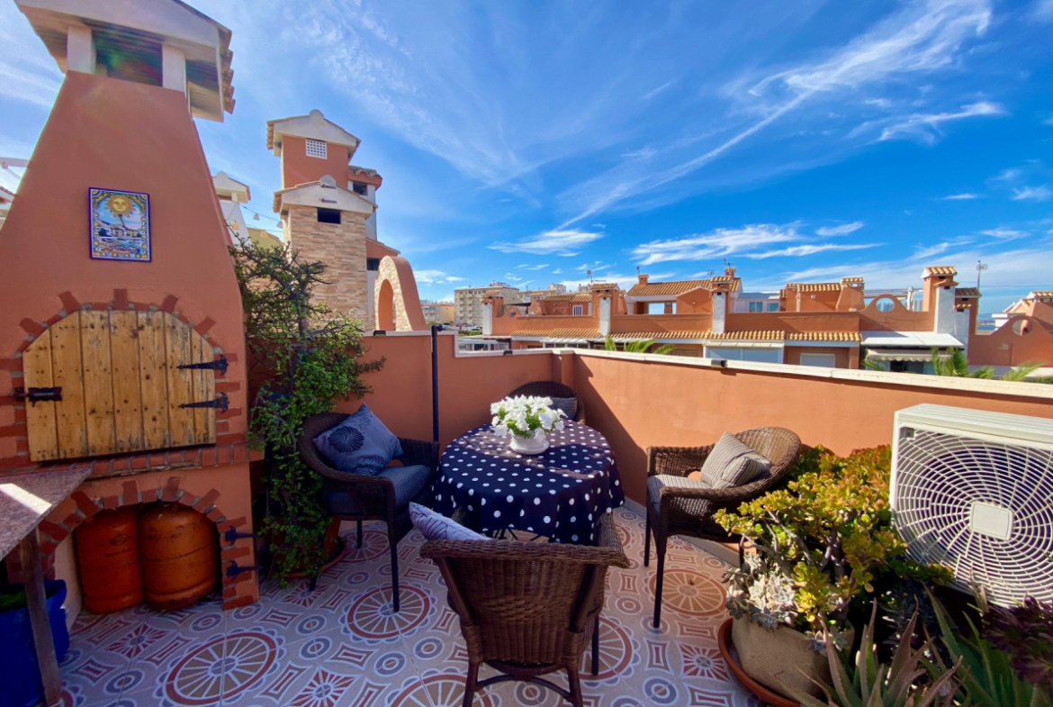 Nuostabus butas viršutiniame aukšte pardavimui La Mata, su vaizdu į jūrą ir privatčia stogo terasa, įsikūręs gerai prižiūrėtame komplekse Gran Sol 3, vos už 800 metrų nuo La Mata paplūdimio.