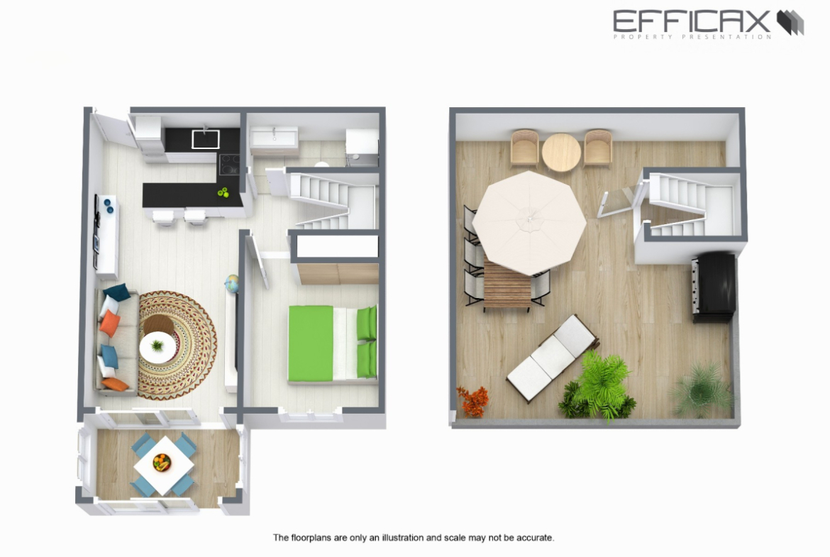 Butas susideda iš šviesaus svetainės ir valgomojo zonos, su tiesioginiu išėjimu į stiklinę terasą, su atviru vaizdu į kraštovaizdžio sodus ir baseiną. Erdvioje, pilnai įrengtoje virtuvėje yra pusryčių baras, kuris sukuria atvirą ir funkcionalią gyvenamąją erdvę.