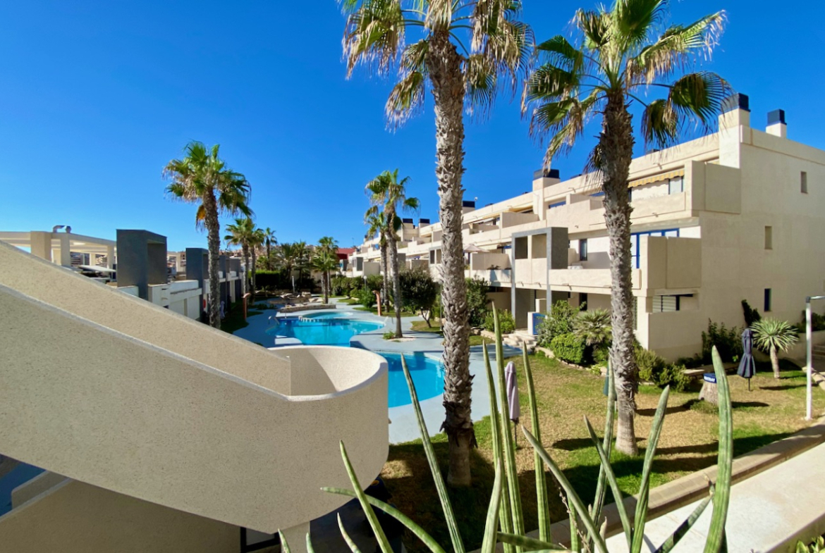 Denne leiligheten tilbyr den perfekte kombinasjonen av avslapning og komfort. Våkn opp til bølgenes lyd, nyt en morgendukkert i fellesbassenget, eller utforsk nærliggende restauranter og butikker. La Mata-stranden er kjent for sin rolige atmosfære, noe som gjør denne eiendommen ideell for ferie, investering eller permanent opphold.