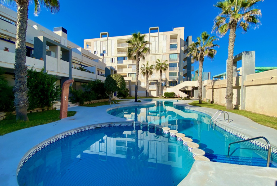 Dette er din ideelle 2-roms leilighet (1 soverom + stue) på Costa Blanca, som kombinerer en førsteklasses beliggenhet ved stranden med moderne komfort og fantastisk utsikt over Middelhavet.
