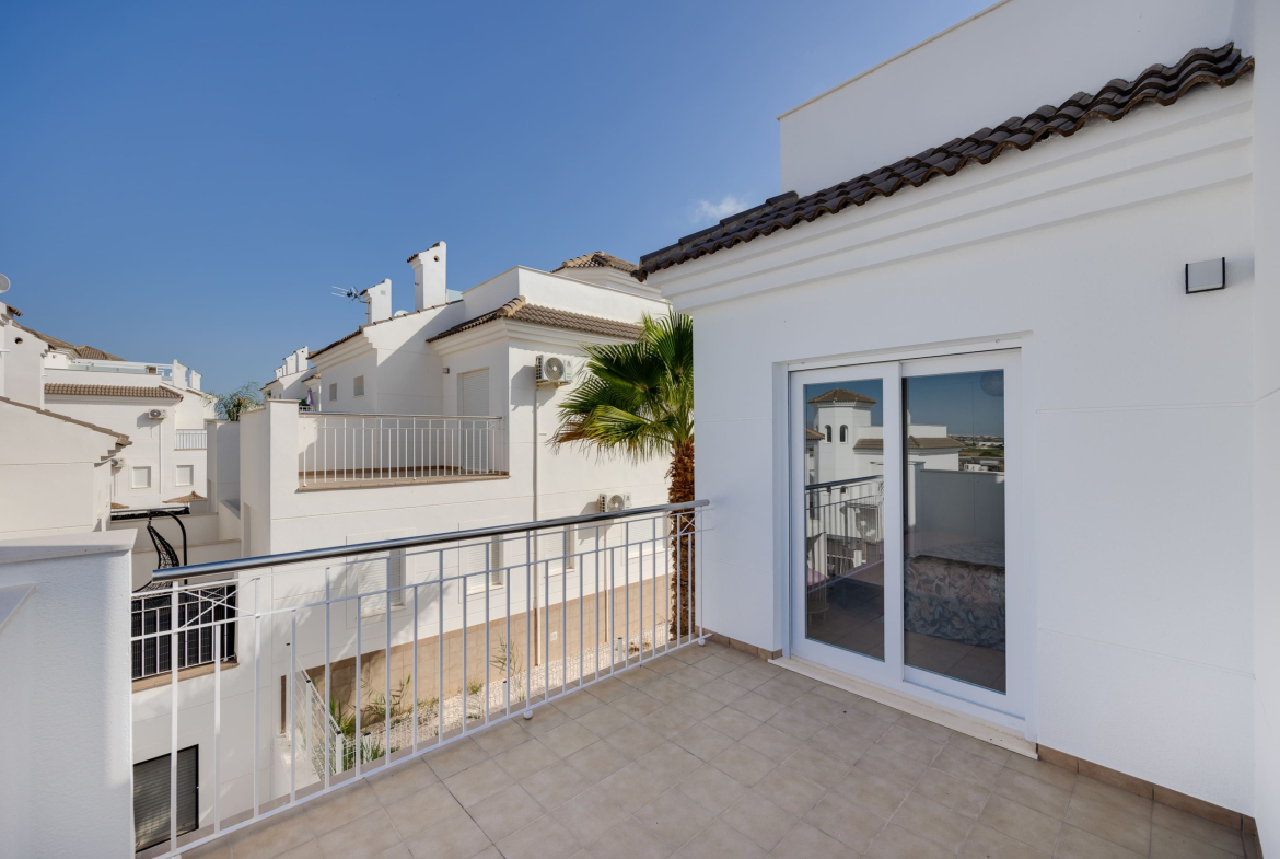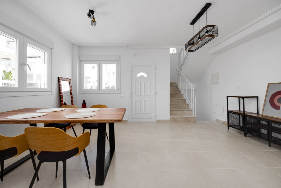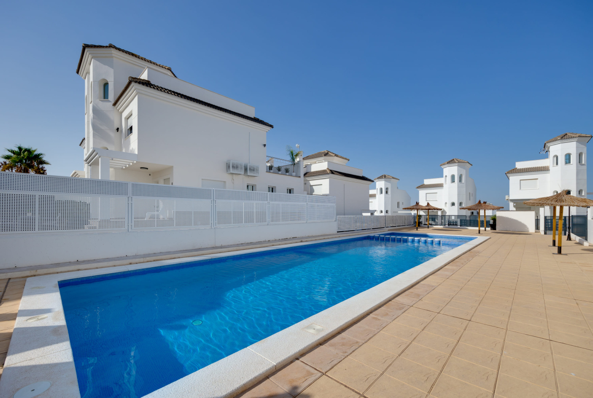 Vi presenterar 9 vackra hus (7 kvar) i bostadskomplexet BUNGAVILLAS SOL. I närheten finns kaféer, restauranger, barer, apotek och 3 stora livsmedelsbutiker: Lidl, Aldi och Mercadona. Endast 10 minuter med bil till stranden och 10 minuter till det populära familje- och nöjescentret “La Marina Resort”, som inkluderar vattenpark, camping, gym, spa, restauranger, butiker och kaféer.
