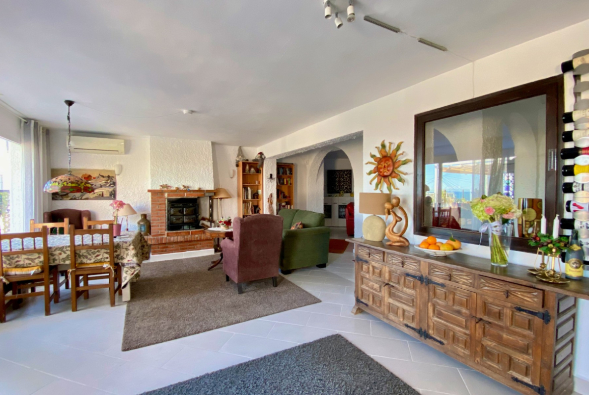 Простора вітальня з обідньою зоною та видом на море